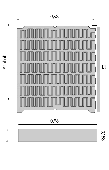 • To be installed using a special clamp; for this, lateral recesses have been incorporated into the element.